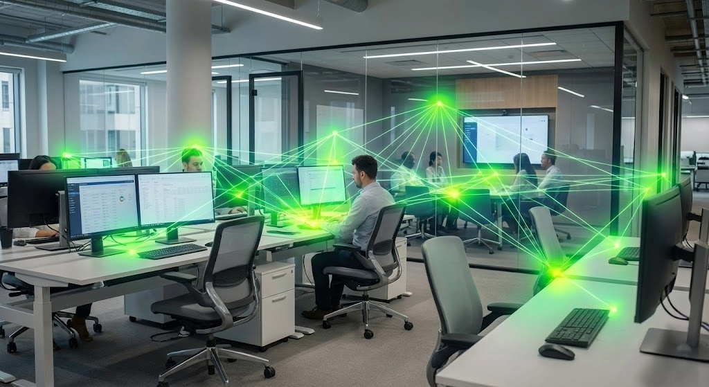 Verificamos que la cobertura sea uniforme y estable en todas las zonas clave de la oficina.